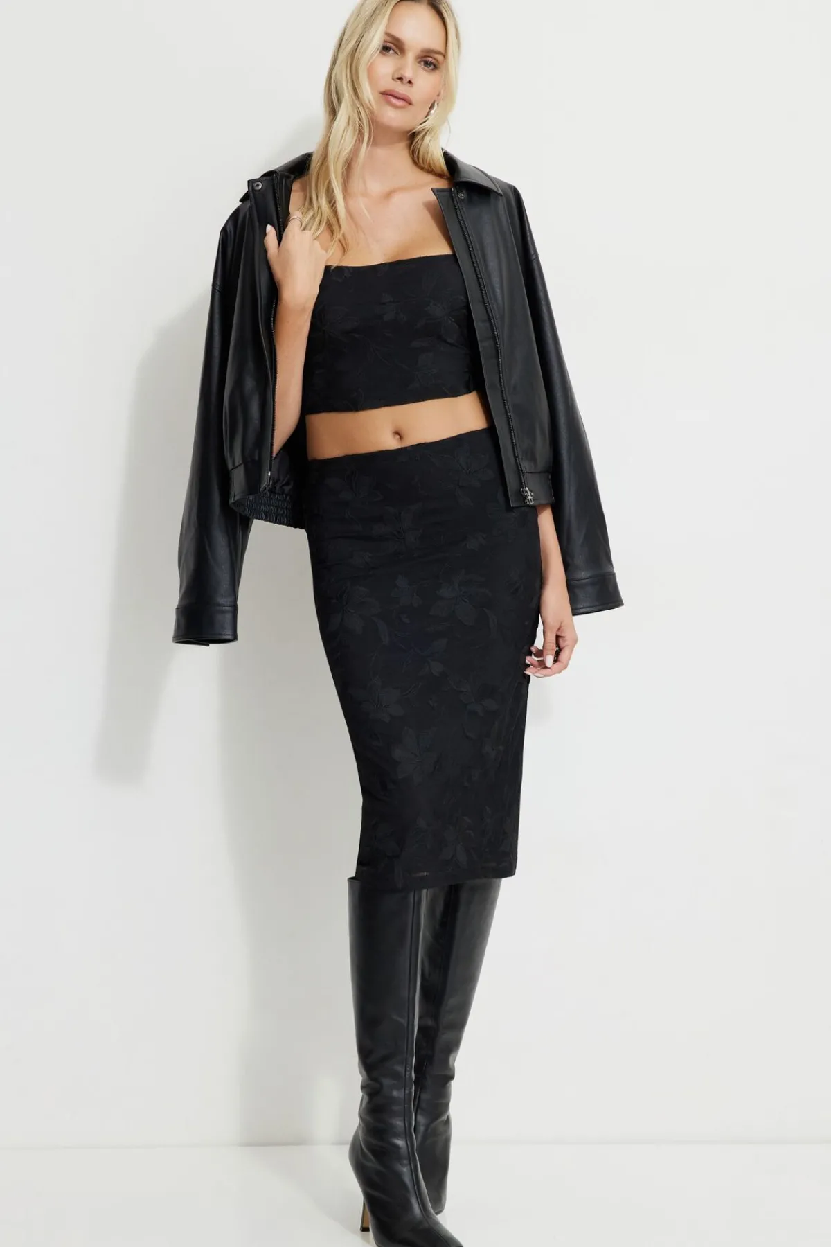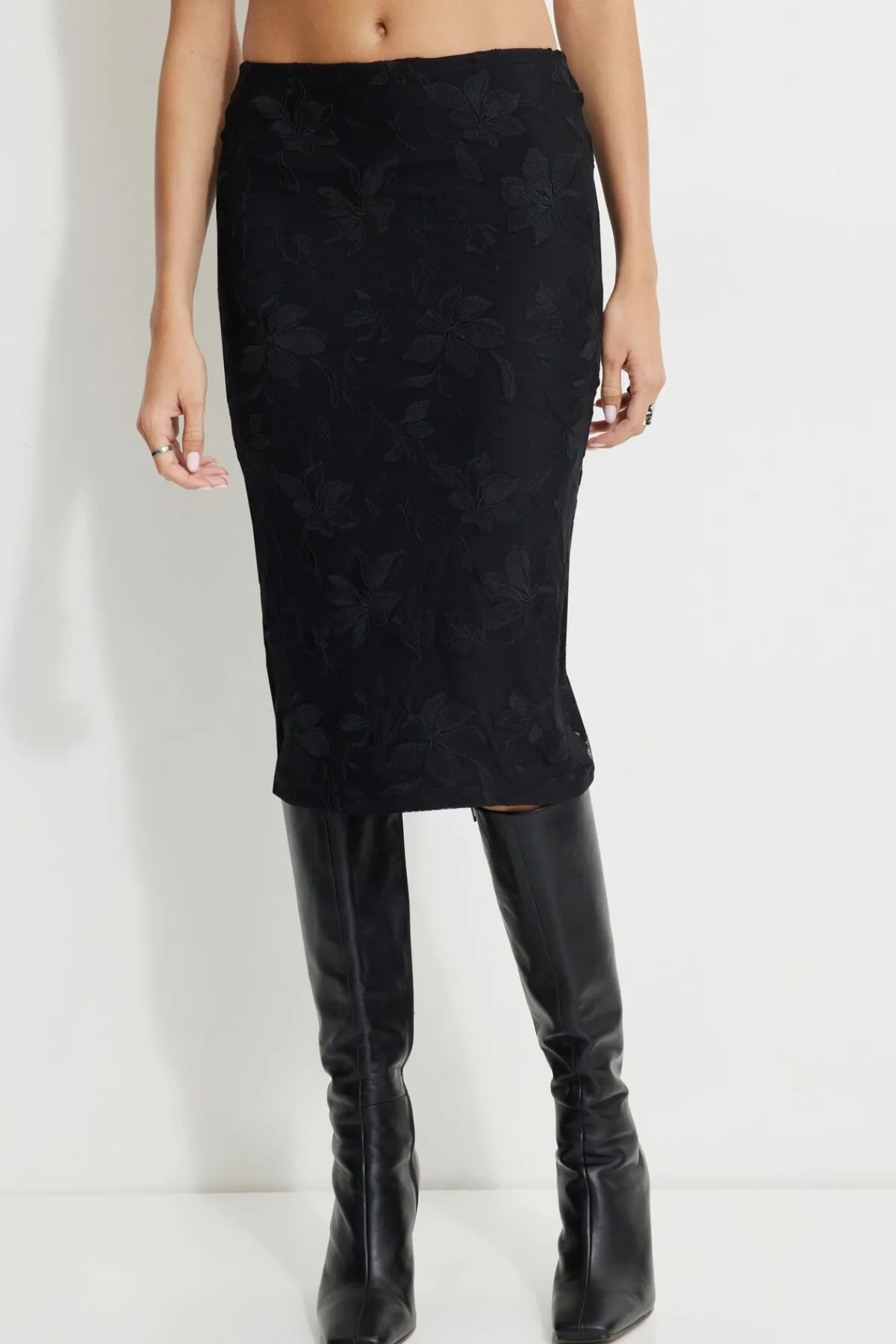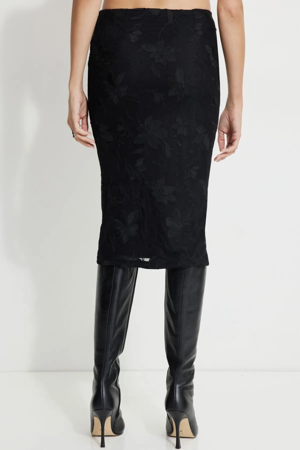 Alana Embroidered Midi Skirt Black – Meet Alana —our embroidered mesh midi skirt. Features Slip-on Elasticized waistba…