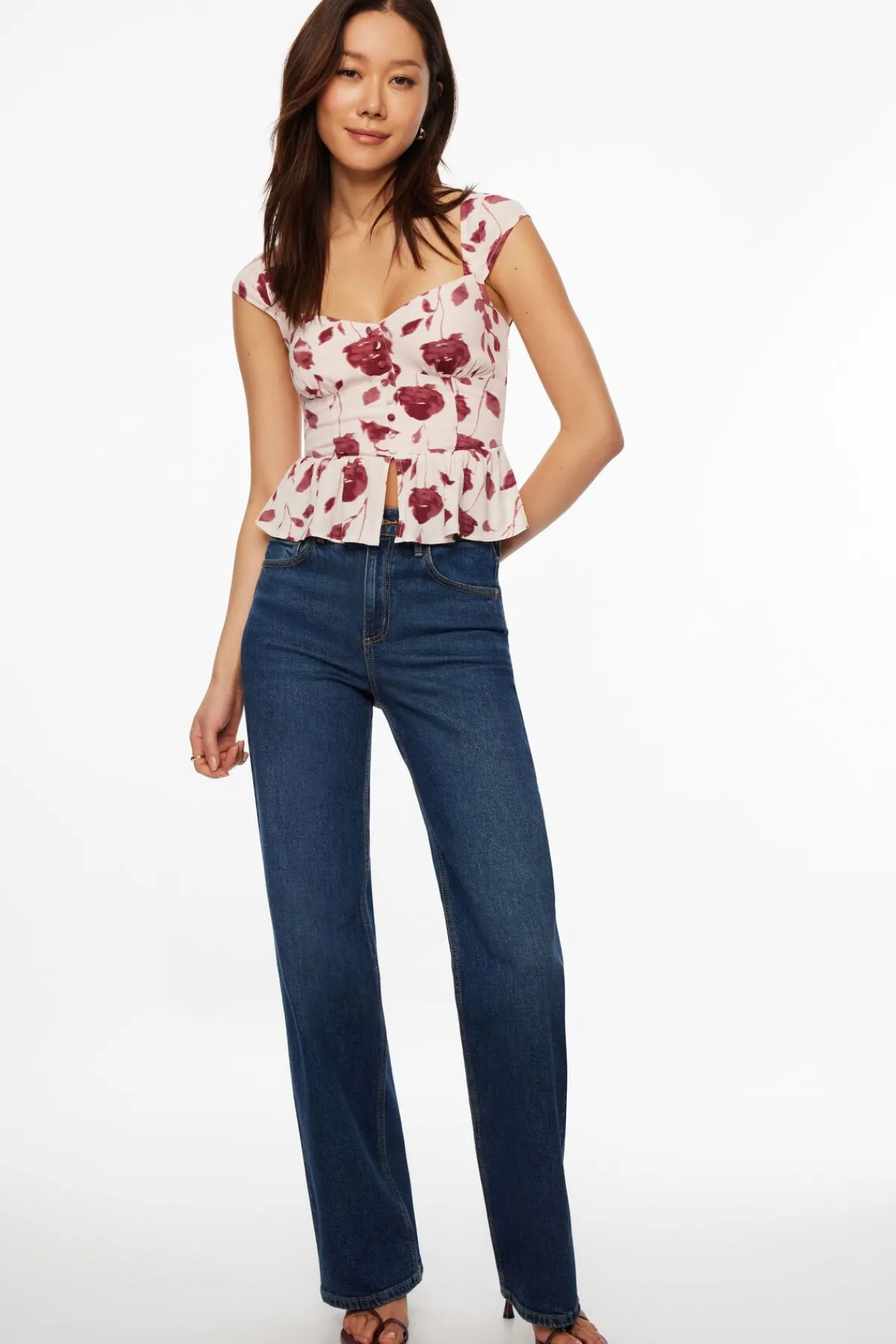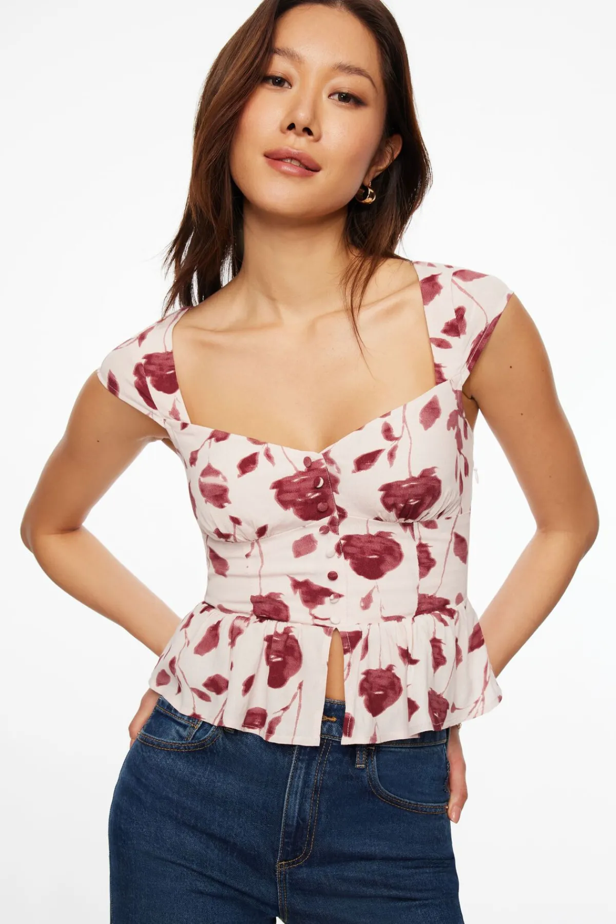 This is a sweetheart neck crepe blouse – Designed to be fitted with a peplum hem.
