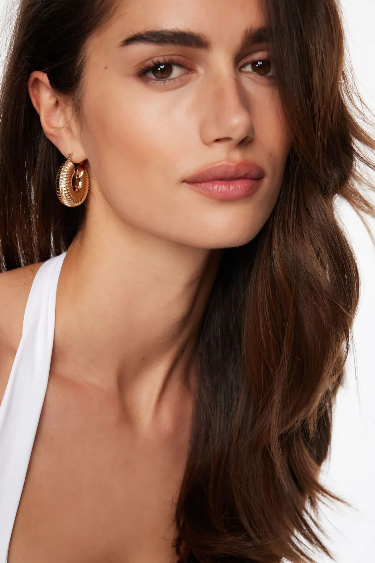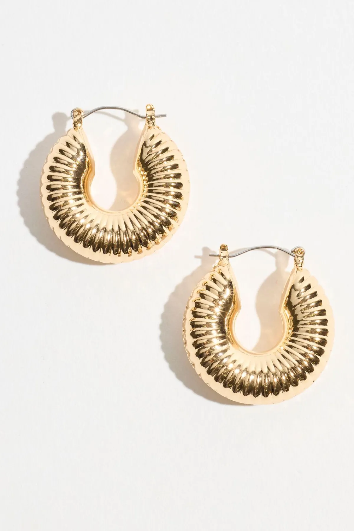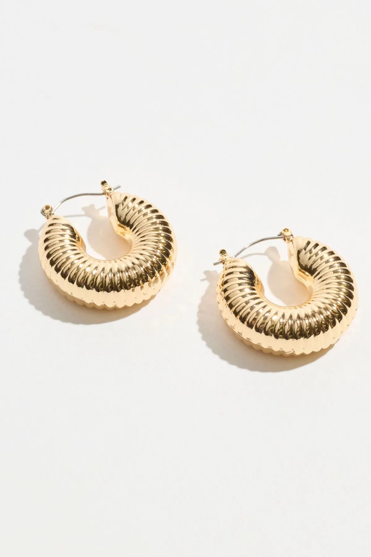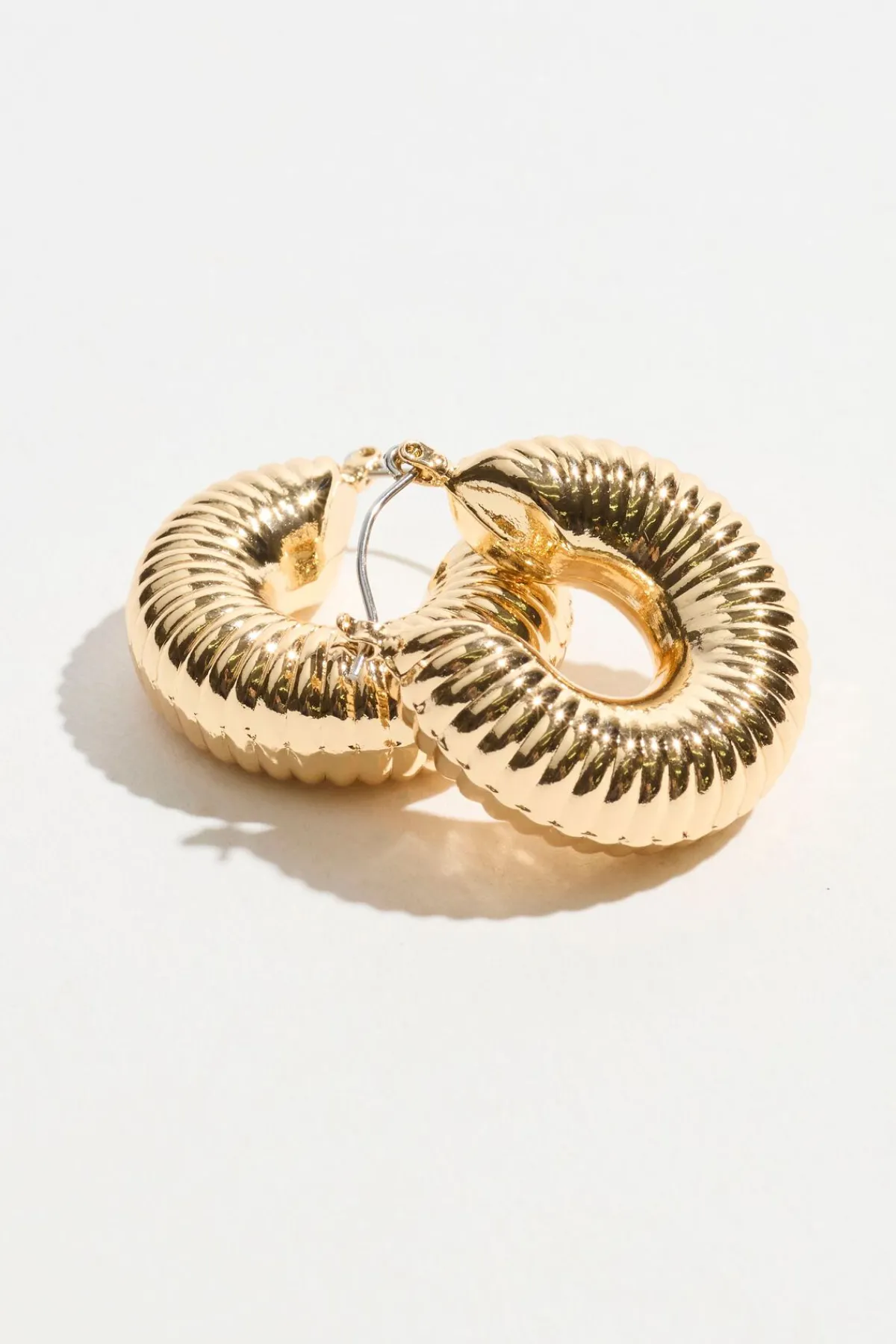 Chunky Ribbed Hoop Earrings Yellow – Make a statement with these ribbed hoop earrings. Features Pin-catch closure Materi…
