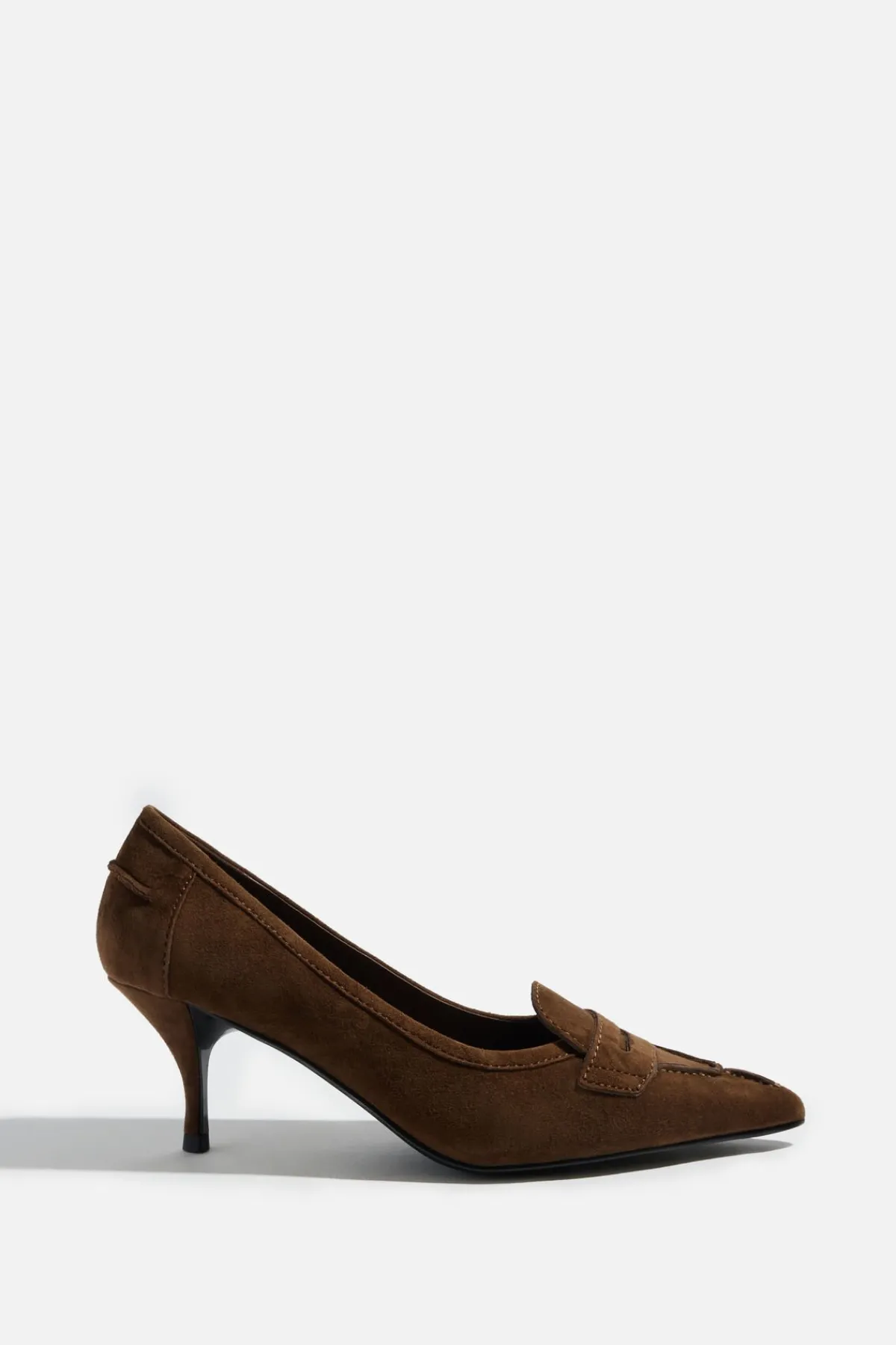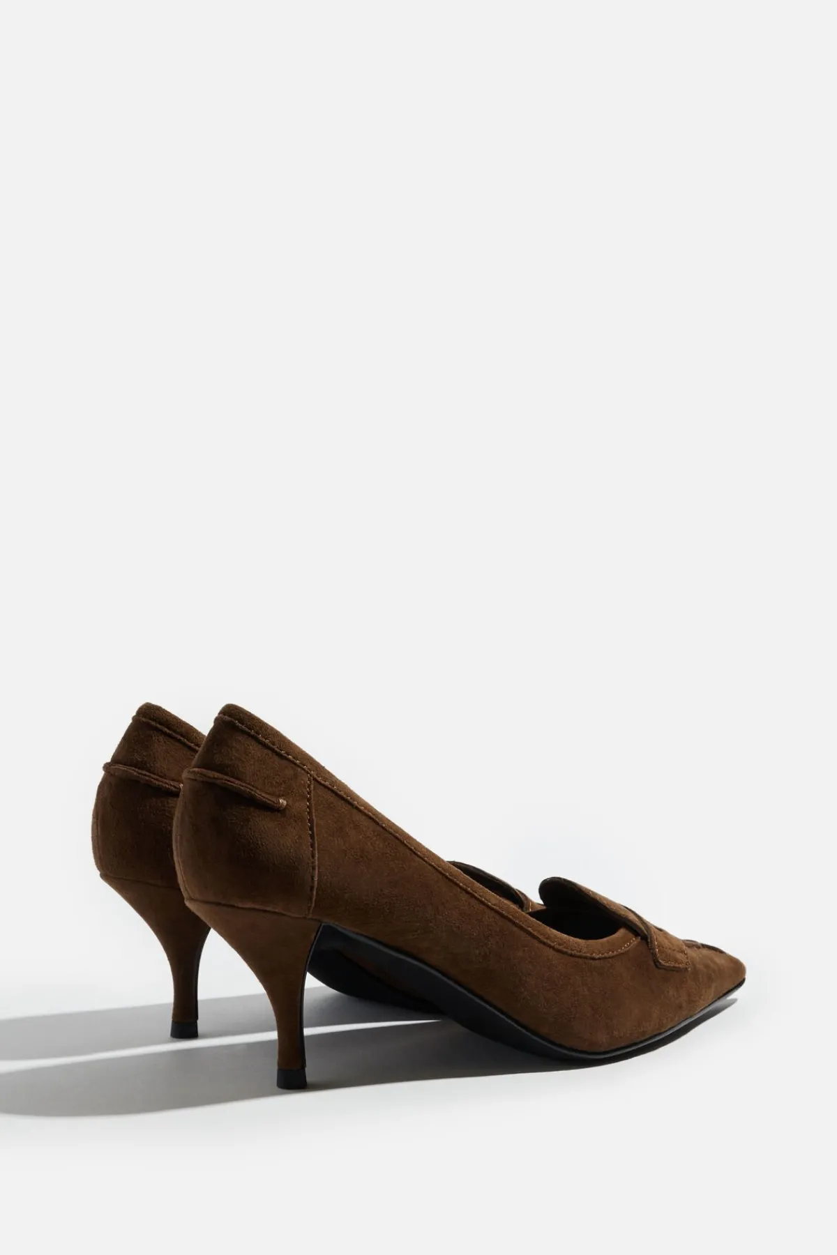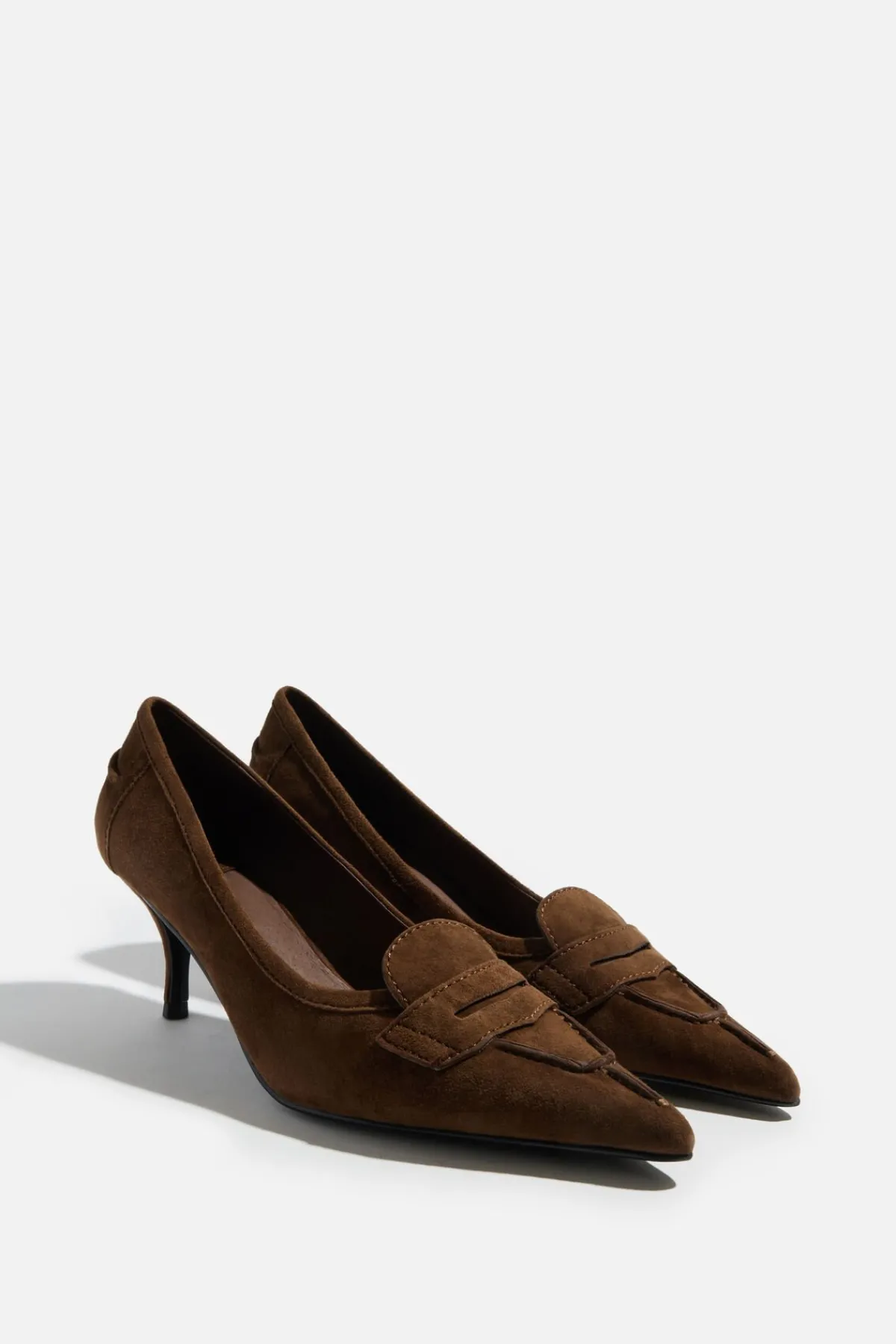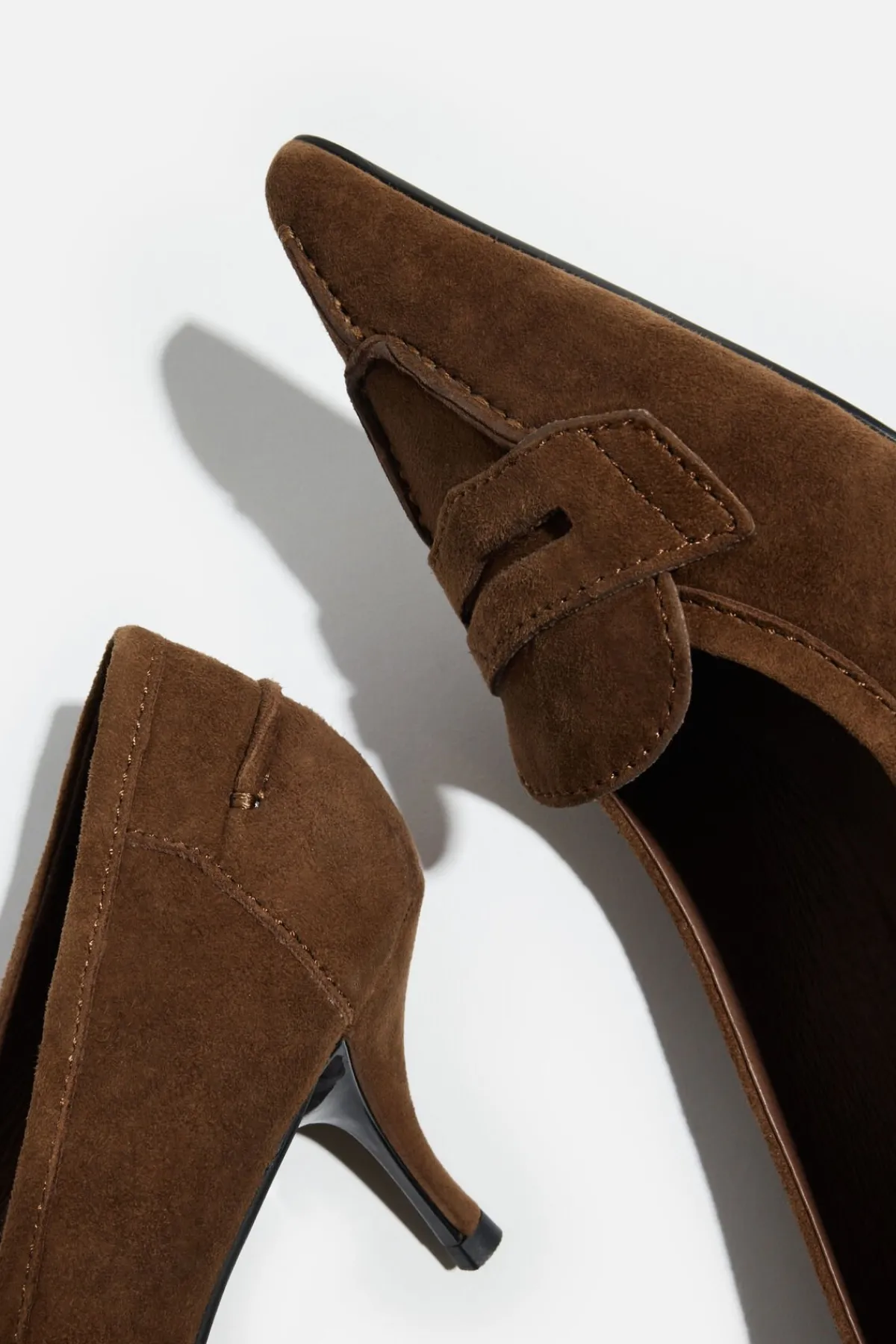 Suede loafer-style pumps for a sophisticated and feminine look.