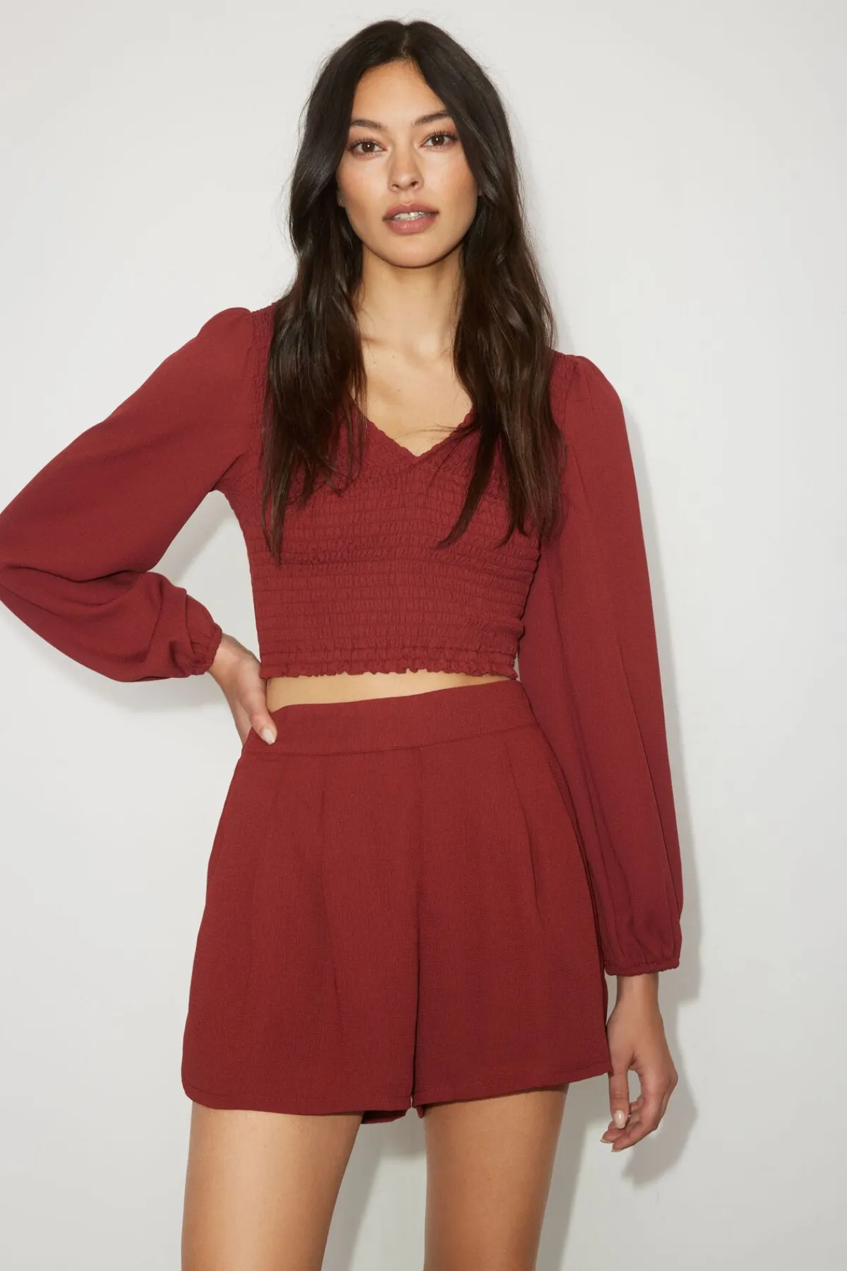 Mabel Flowy Shorts Burgundy – Flowy and fabulous Features Elasticized waist Pleated details Flowy Pull-on Side pockets L…