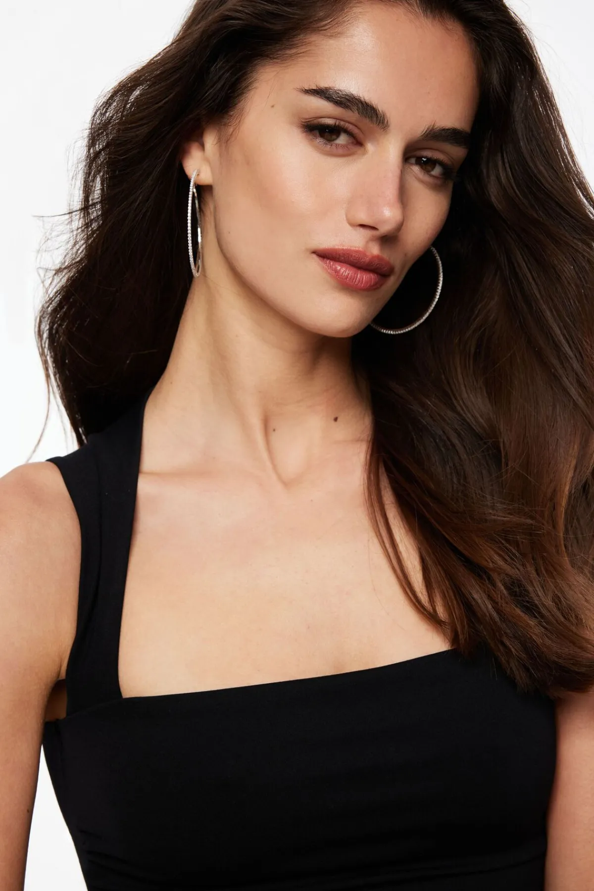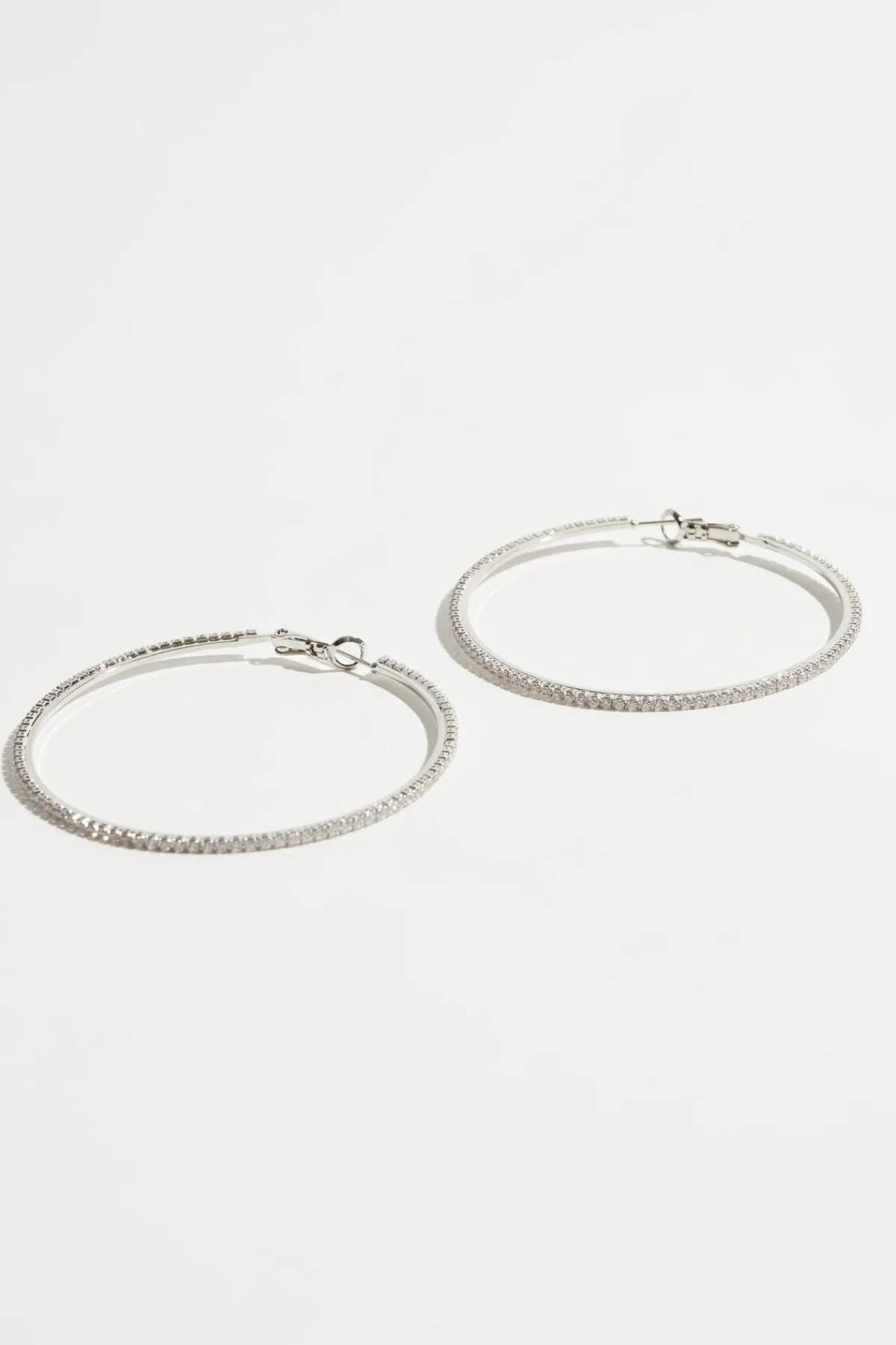Micro Pavé Gem Hoop Earrings Gray – Diamonds are a girl’s best friend. Features Cubic zirconia detailing Pin-latch clos…