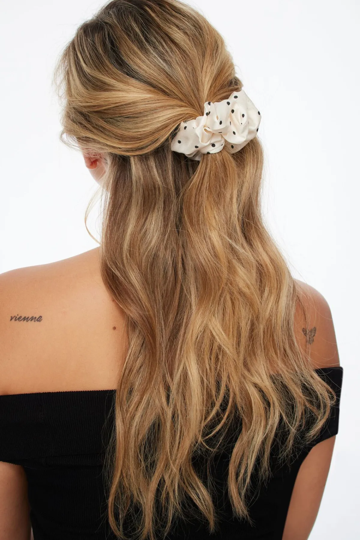 Satin Scrunchie White – Wrap it up! Features Polka dot pattern Diameter: 2