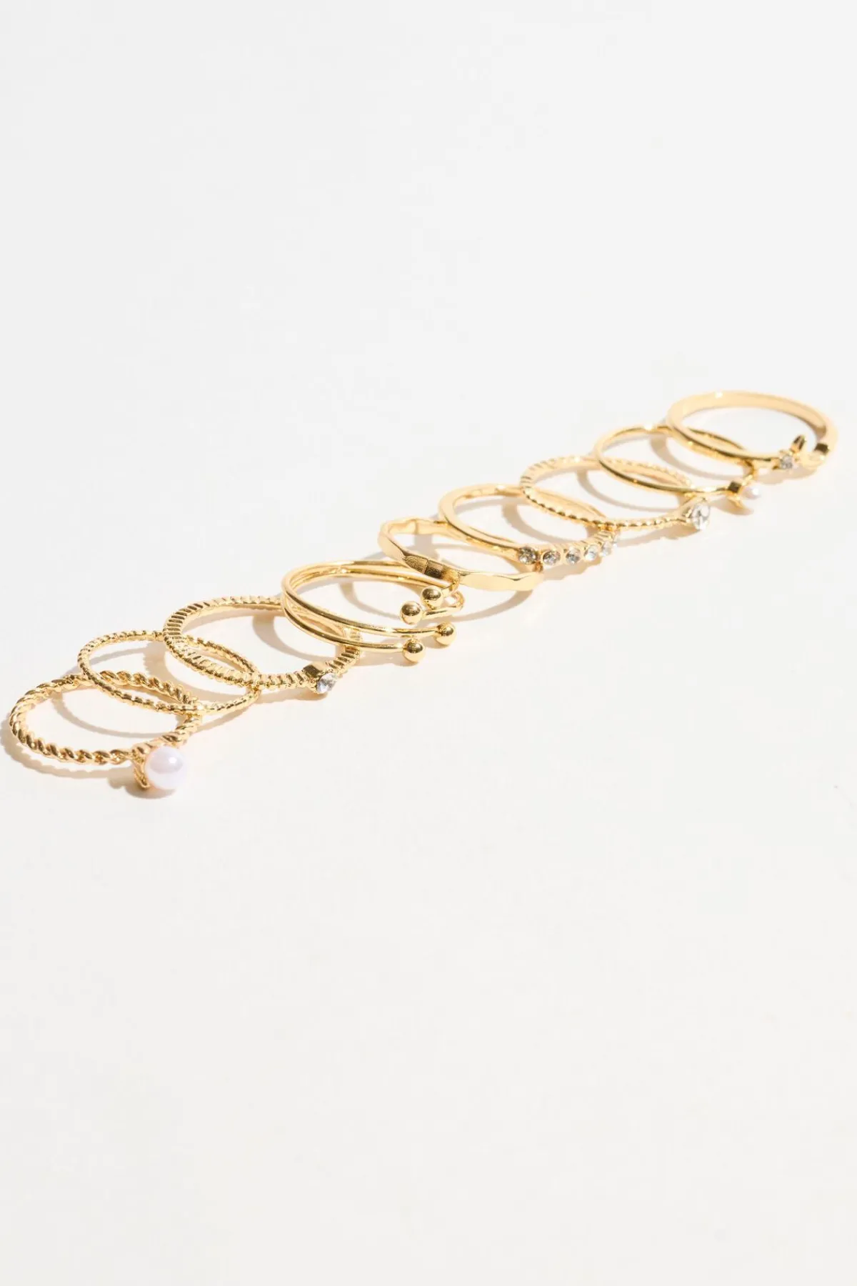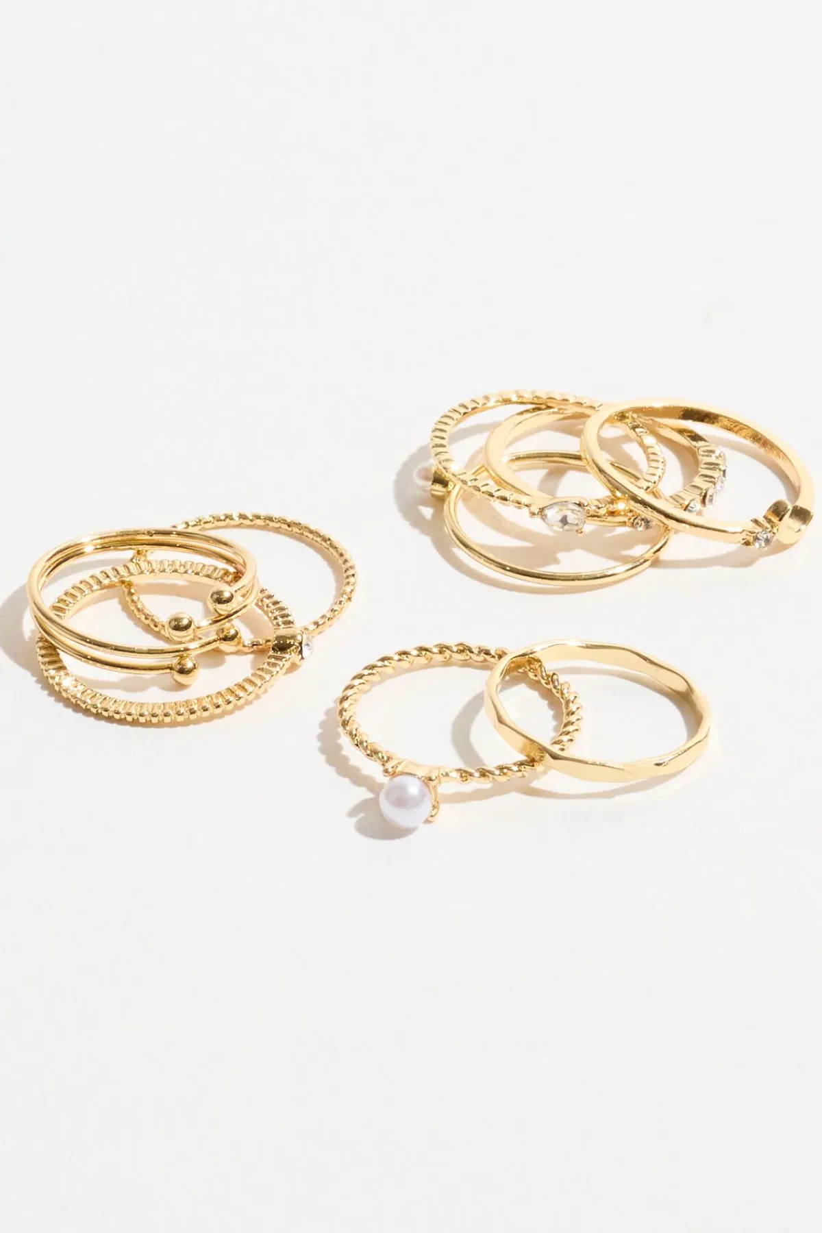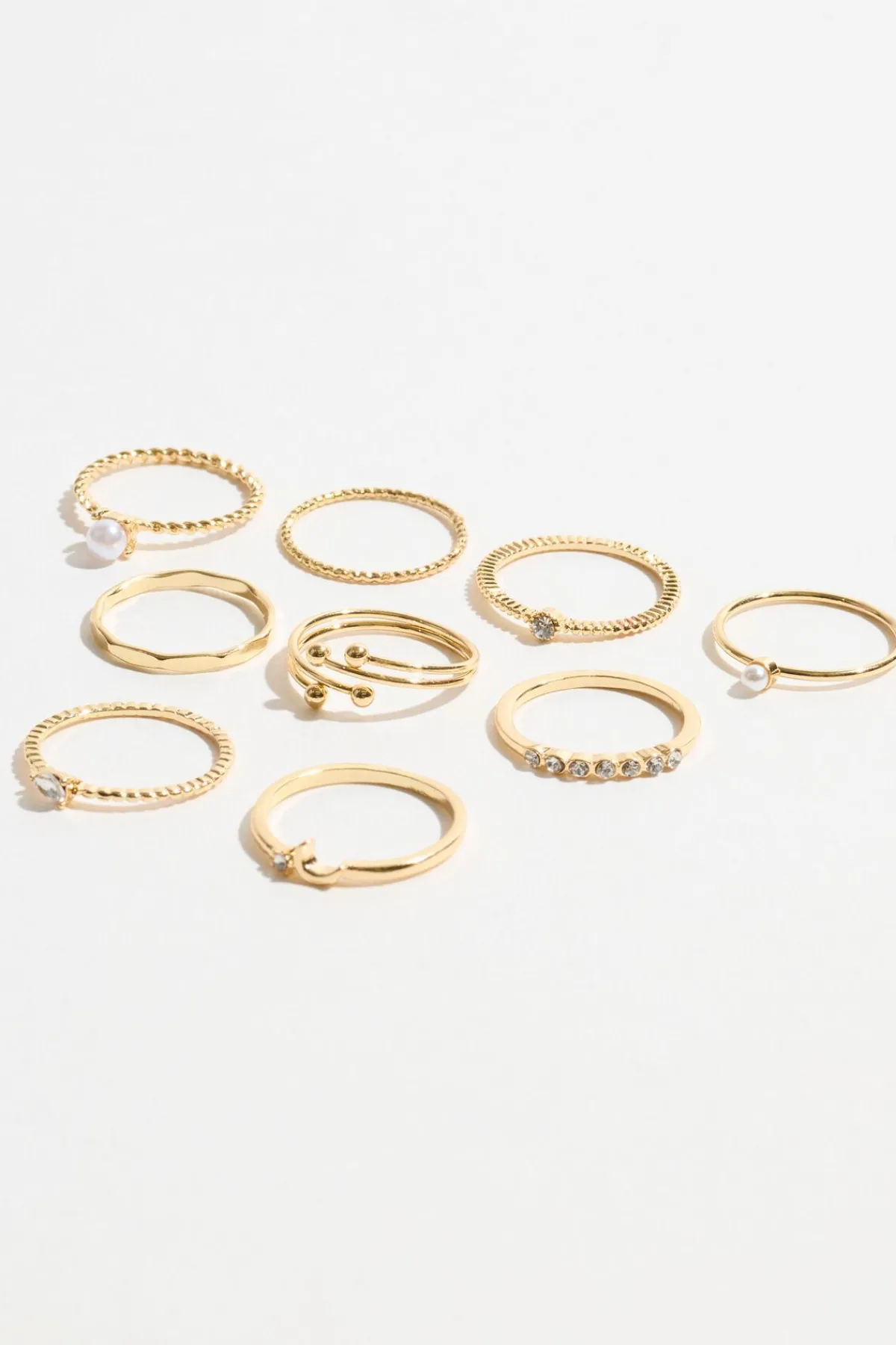9-Pack Mini Pearl & Gem Rings White – Stack till your heart’s content Features Set of 9 Faux pearls and faux gems De…