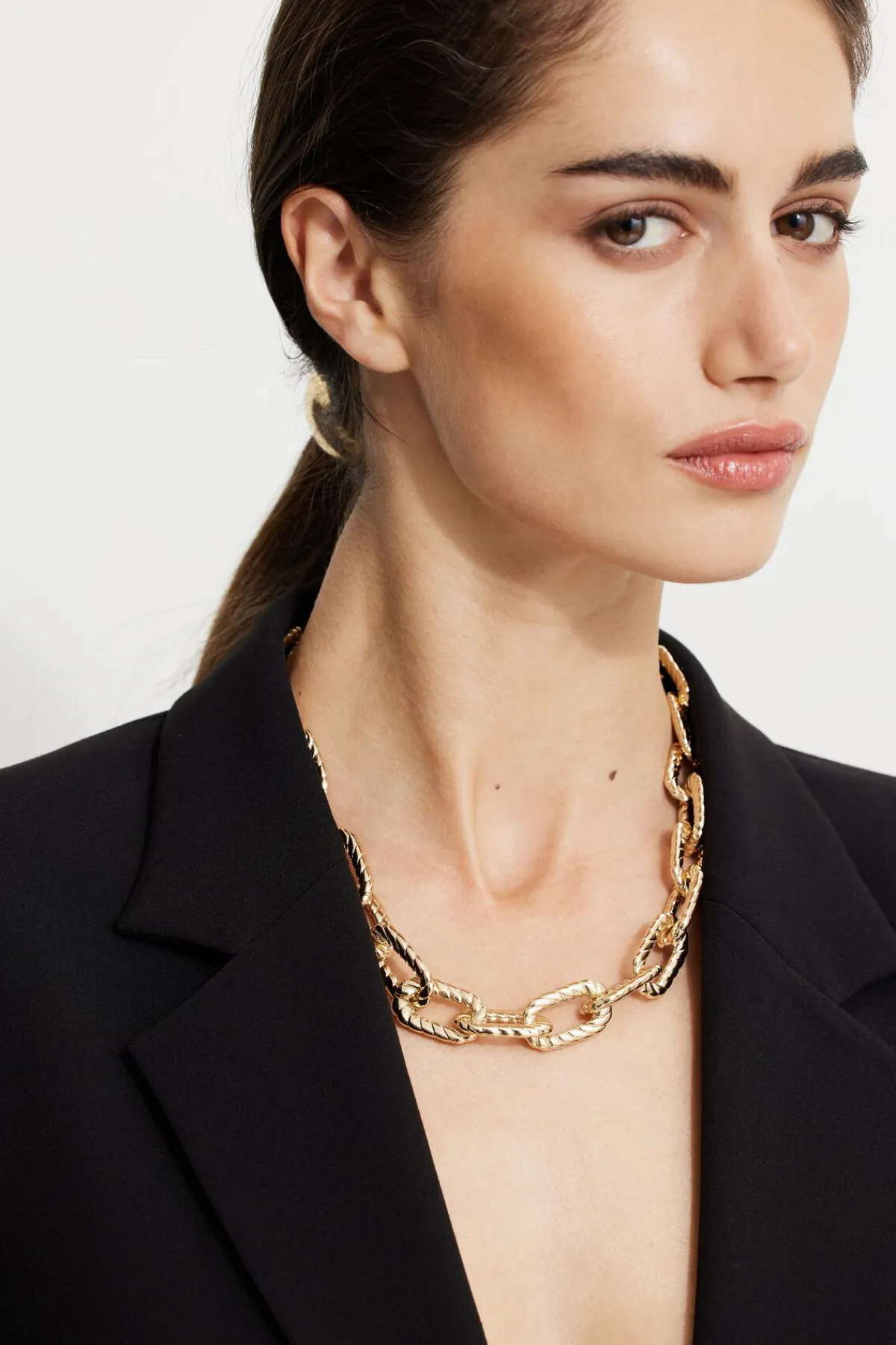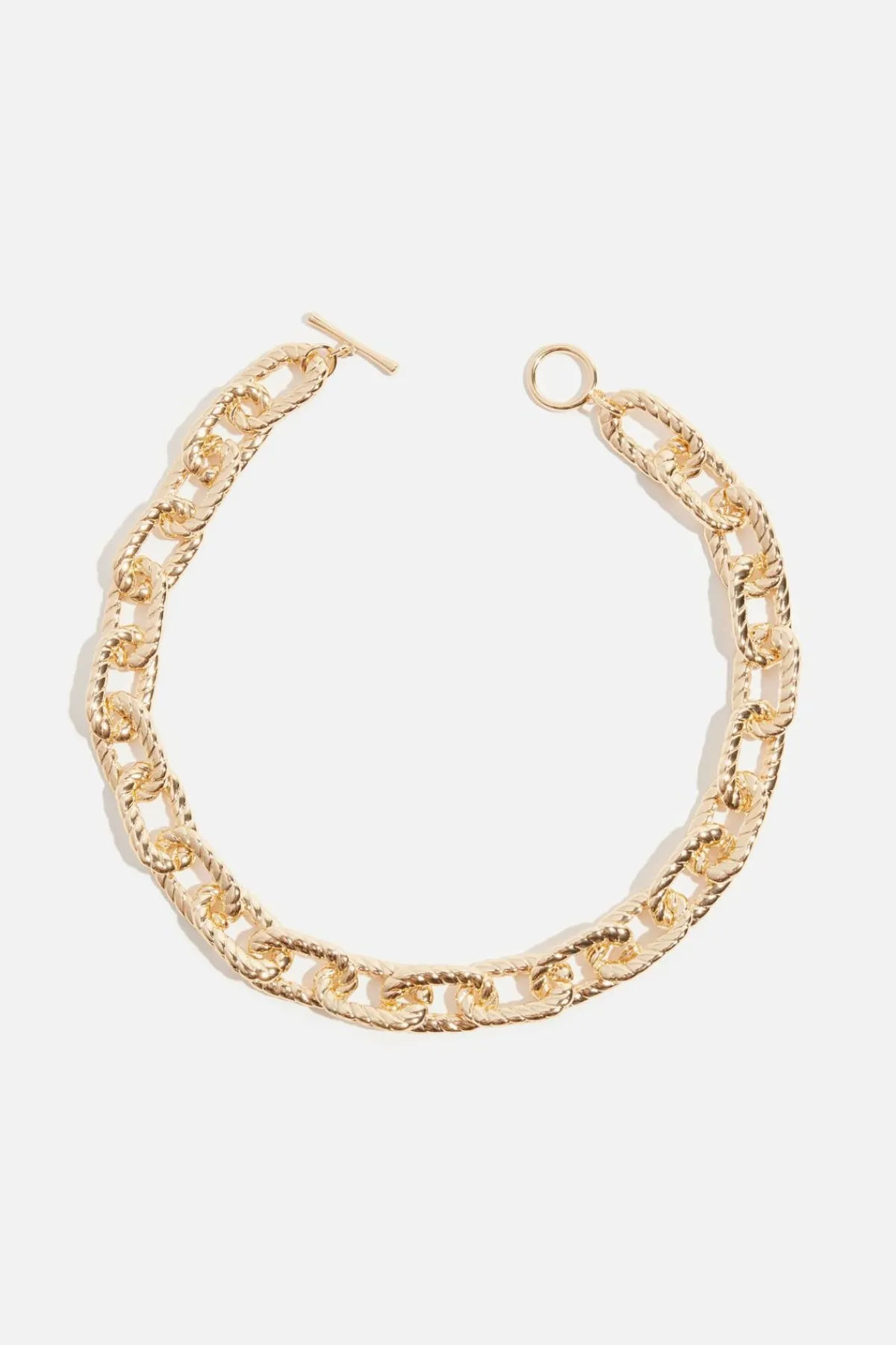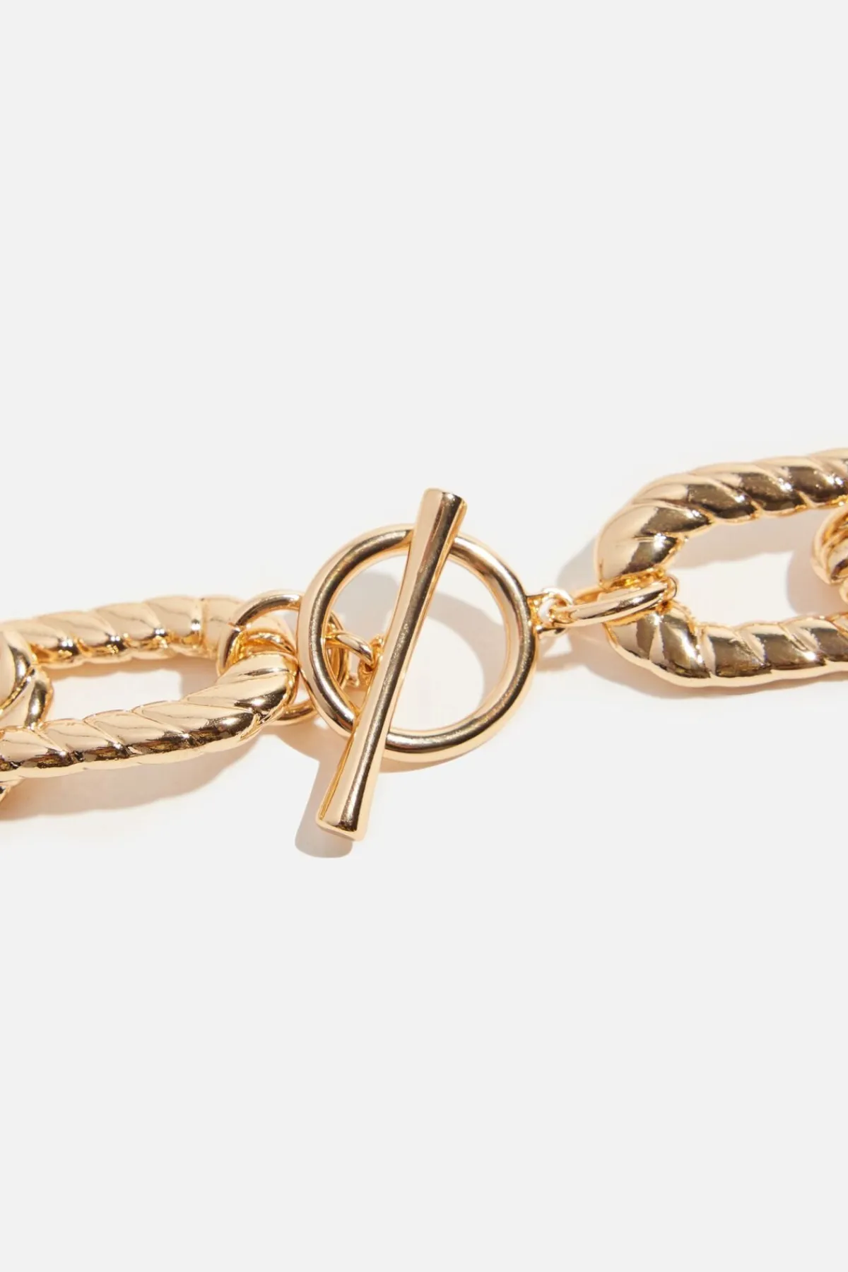 Roped Chain Link Necklace Yellow – Make a statement in this chain link necklace. Features Textured chain link Toggle fas…