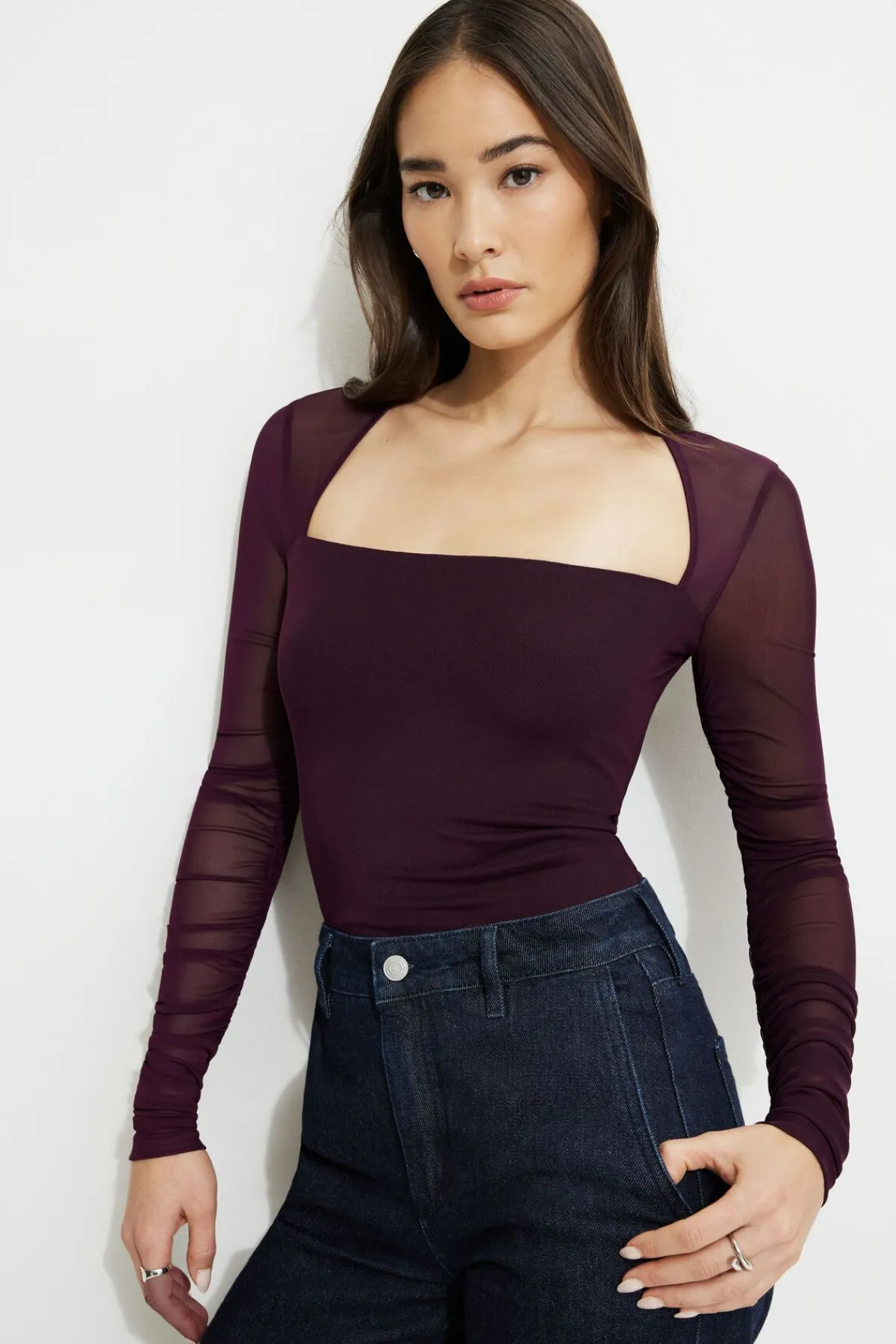 This semi-sheer mesh top is designed to be fitted to your form.