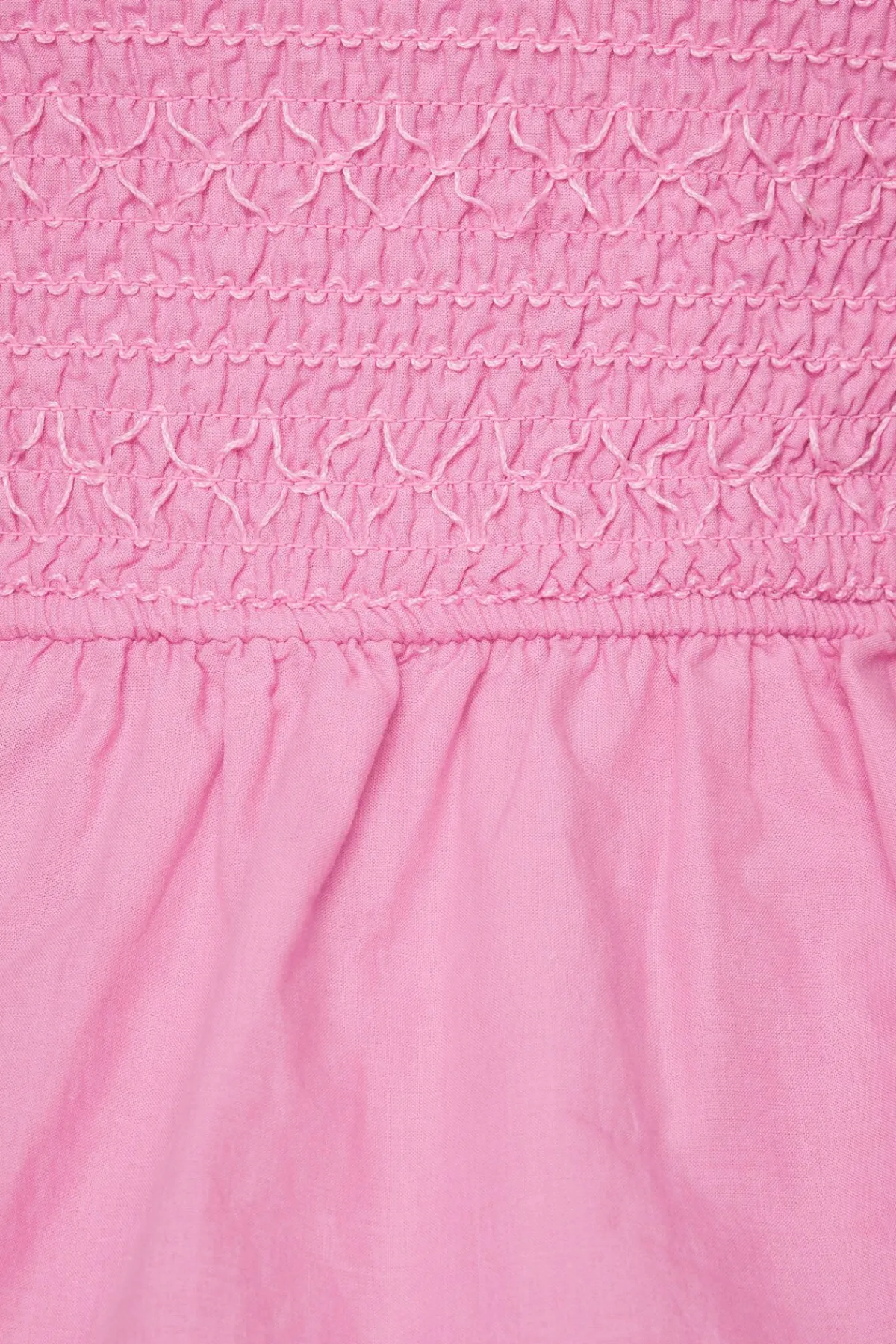 Smocked Peplum Cami Pink – This is a cotton voile top – Designed to be fitted with smocking throughout. Features Square …